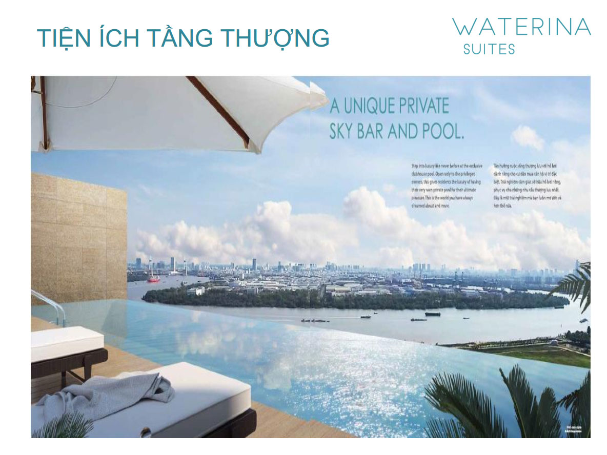 Waterina Suites được thiết kế với ban công đón gió và ánh sáng tự nhiên.Từ căn hộ của mình bạn có thể hướng nhìn ra sông và toàn cảnh Sài Gòn thơ mộng. Không gian kiến trúc nội thất được thiết kế rộng rãi, thoáng mát đón gió trời và ánh sáng tự nhiên.